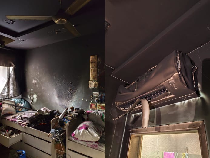 Ms Sophie and her older sister were not home at the time but the rest of their family members were. They used a fire extinguisher to put out the fire, then dialled 995 as the room continued to smoulder.