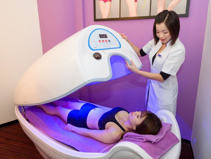 The customer then spends the next 20 to 30 minutes comfortably ensconced in an infrared spa capsule. Ms Sng shared that this form of infrared therapy raises the body’s core temperature, which can boost calorie burning, similar to what one would experience in a sauna, and has toning benefits.
