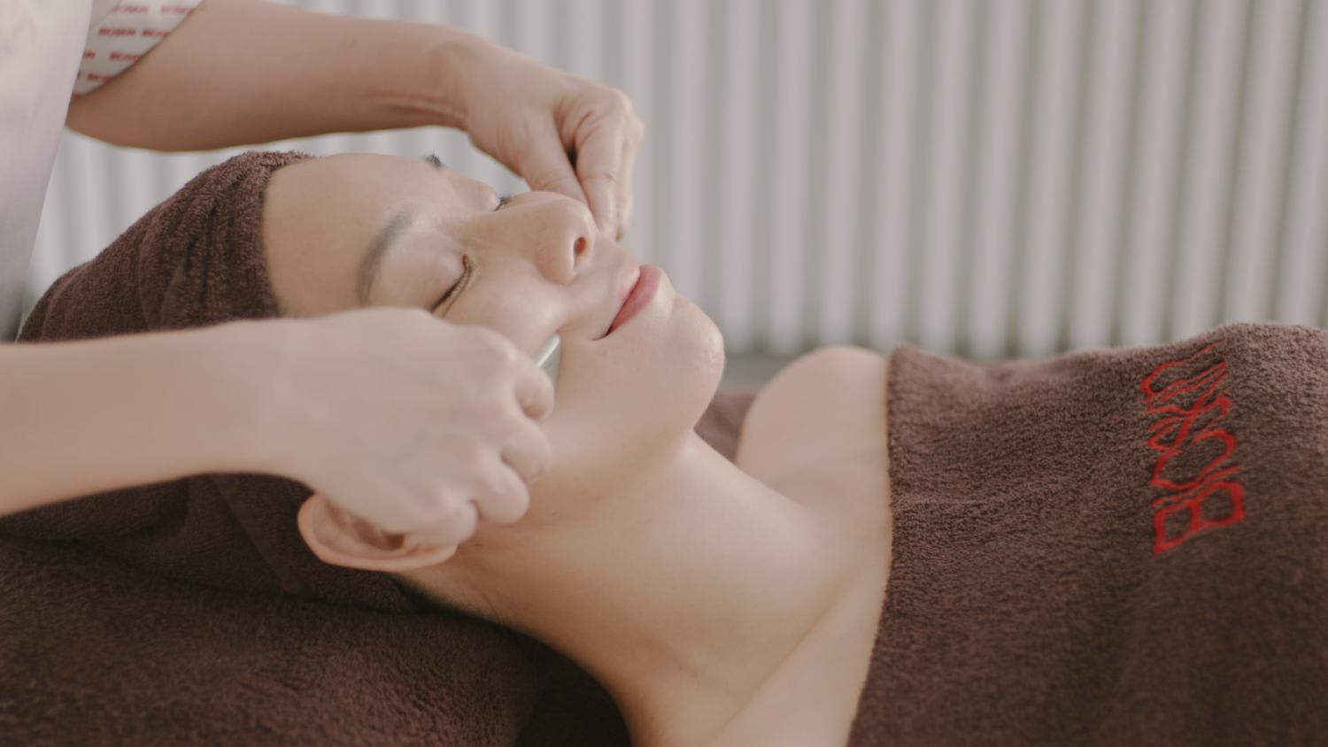 A crucial step in the treatment is the signature multi-lift face-sculpting technique and acupressure lifting massage. This is touted to improve the look of puppet lines and the nasolabial folds that extend from the nose to the corners of your mouth, enhance the jawline and plump the muscles in the apples of your cheeks. “The technique targets four facial acupressure points, namely the chengjiang point, dicang point, yingxiang point and zygomatic point,” Ms Tay said. “These are located in the areas of the face that are particularly prone to sagging – around the cheeks, chin and just below the sides of the nose.”