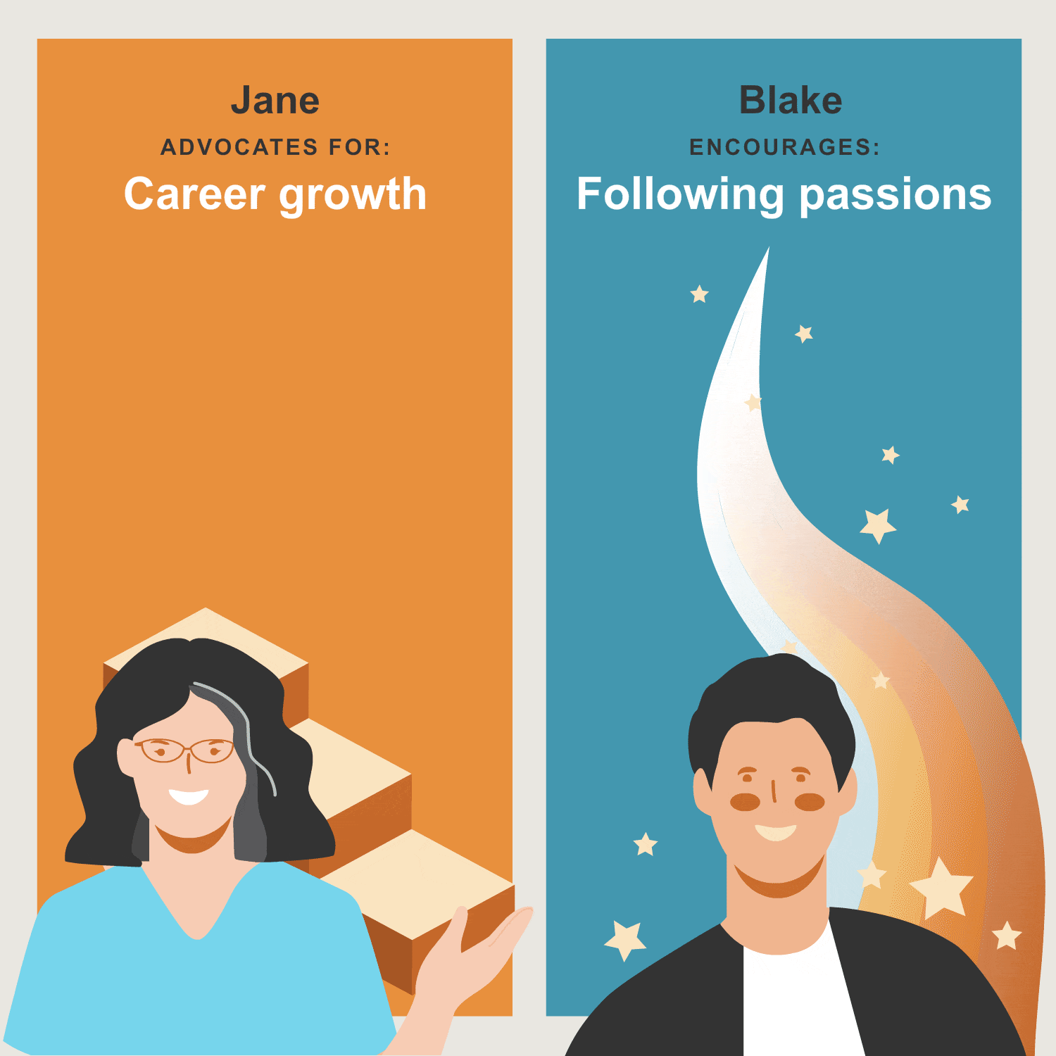 Blake’s advice focuses on immediate satisfaction and personal growth, which may appeal to Josh’s aspirations for a dynamic career. On the other hand, Jane emphasises the value of consistent career progression and long-term security.