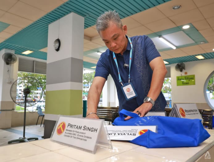 Like clockwork, he pulled out chairs and put up place cards indicating where residents may register for Aljunied GRC MP Pritam Singh’s weekly Meet-The-People Session, which starts at 7.30pm.