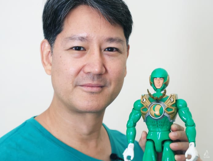 Mr Jason Chan, who played the Green Samurai Ranger in a season of the popular Power Rangers television franchise, at his home on Aug 12, 2025. He still keeps his original costume, though admits it no longer fits. (Photo: CNA/Ooi Boon Keong)