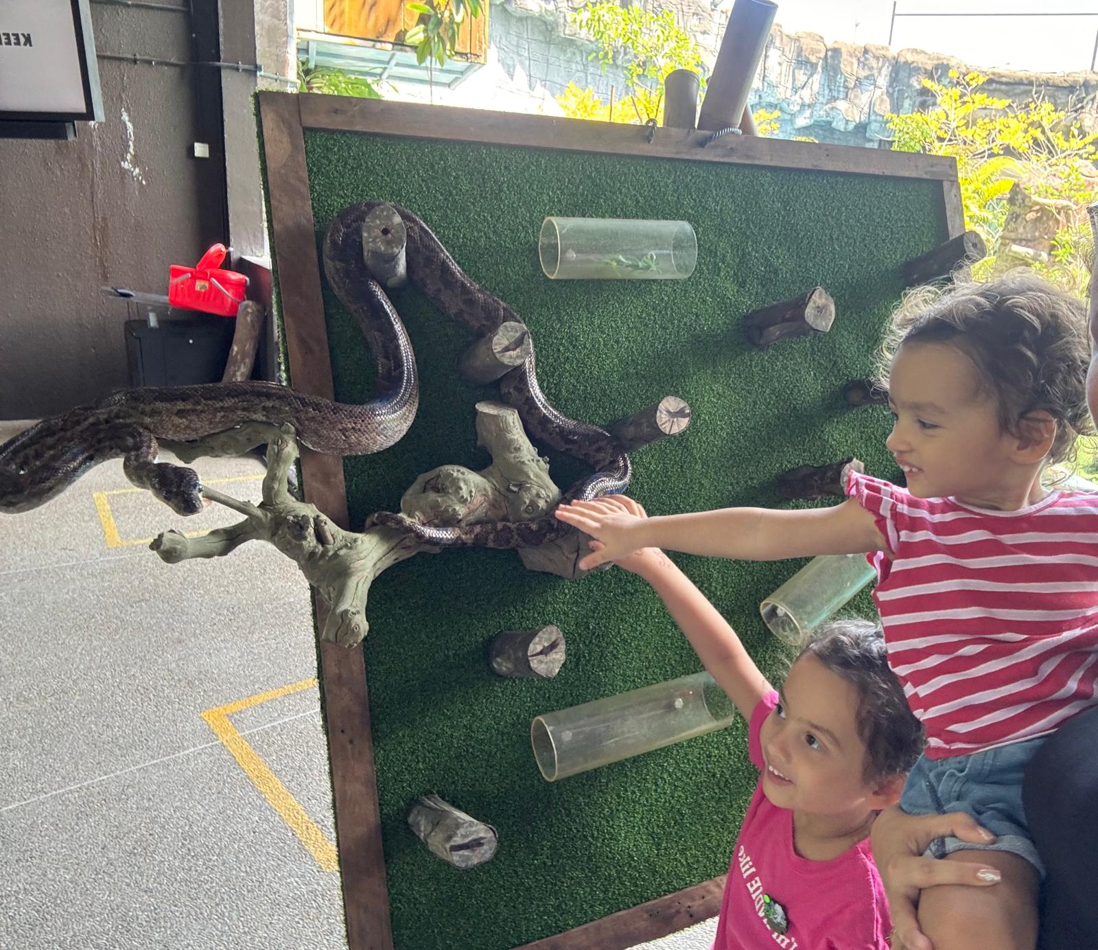 Everyone found it charming and readily moved aside, and up went my two girls to touch the snake. My parents and I watched them from our spot metres away, beaming proudly.