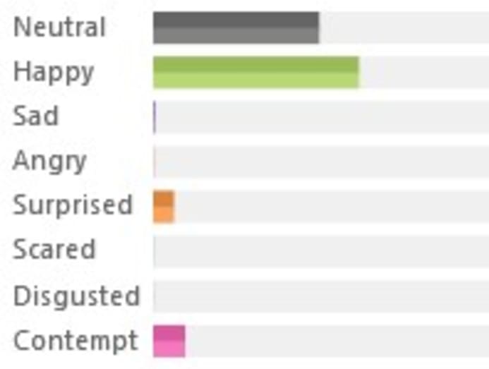 Curious to see if I indeed have an RBF, I submitted a good mugshot of myself to FaceReader, which is available on the Test Your RBF website. My results indicated that I really do have an RBF, as shown by the presence of the purple bar in the chart below.
