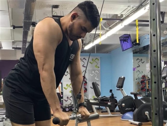 The author exercising in a gym earlier this year. He says working out helps him to clear his mind. Photo courtesy of Mirosh Singh