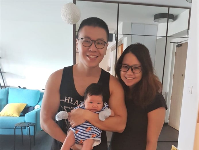 The author with her husband Kelvin celebrating their baby's one-month birthday. Photo courtesy of Christel Goh