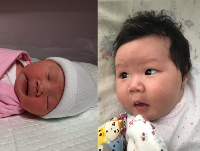 A montage of baby Fayth shortly after she was born on July 1 (left) and after turning one month old. Photo courtesy of Christel Goh