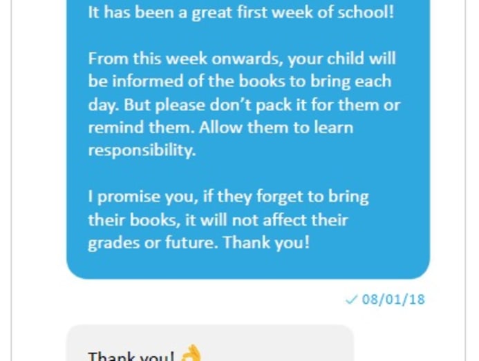 What’s worse, some parents may develop a reliance on these messages, and expect to be reminded on what homework to check. If parents can become reliant, what more the student.