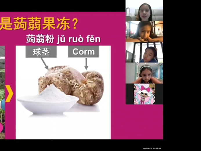 The author's daughter doing a "show and tell" in Mandarin over Zoom with her Primary 2 classmates.