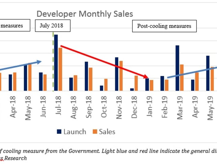 Sales volume of new private homes by developers stabilised in February 2019 before picking up from March to June 2019 to a level even higher than pre-cooling measures.