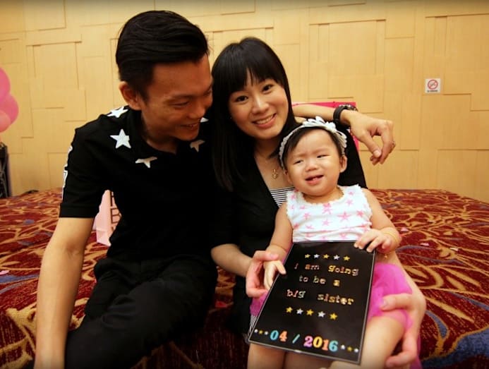 The author and her husband at their eldest child’s one-year birthday party, where they first told friends and relatives they were expecting a second child. Photo courtesy of Li Minhua