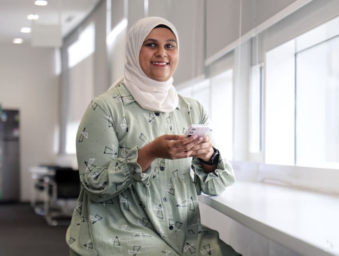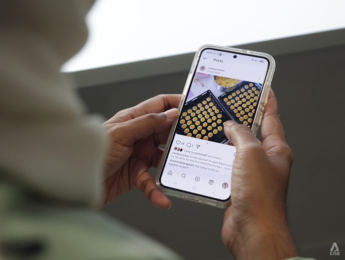 CNA's Jalelah Abu Baker looks at a photo of herself posted to her Instagram account on Oct 30, 2025. (Photo: CNA/Ooi Boon Keong)
