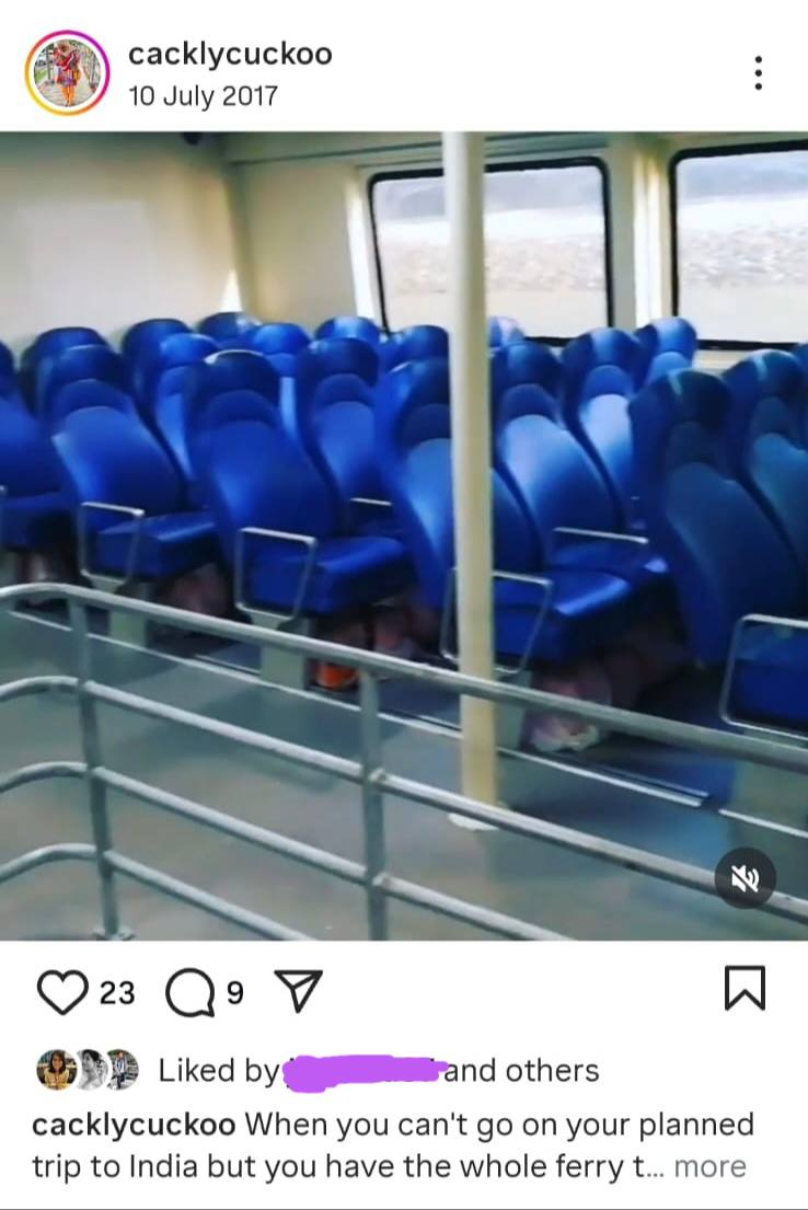 In July 2017, I posted a short video with the caption: "When you can't go on your planned trip to India, but you have the whole ferry to Batam to yourself."