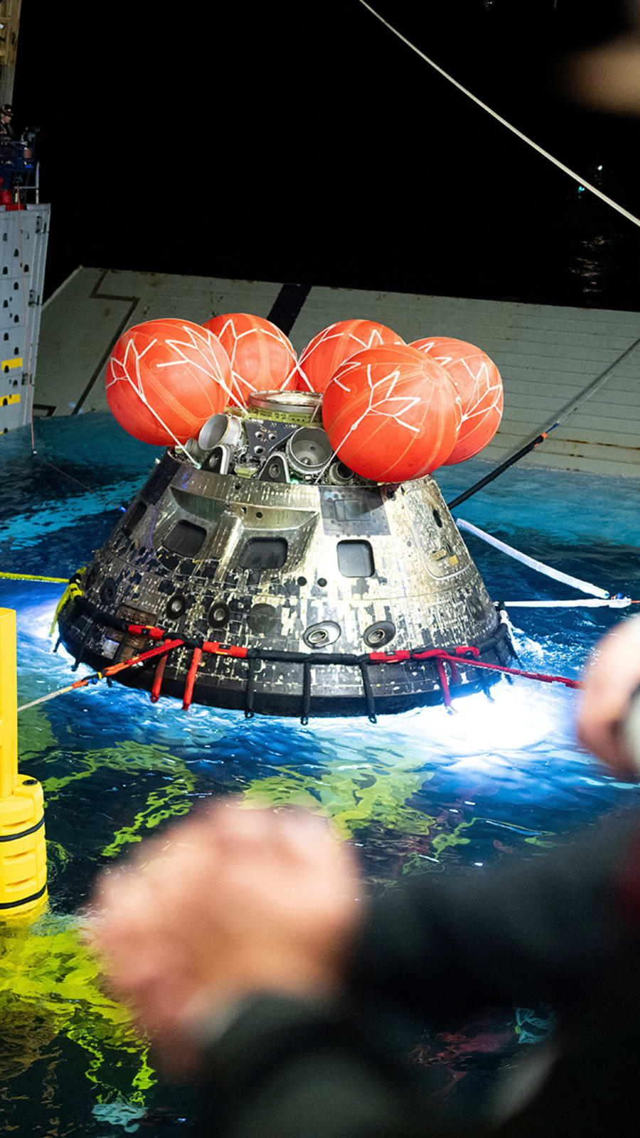 Recovery teams swiftly secured the capsule as astronauts Reid Wiseman, Victor Glover, Christina Koch and Jeremy Hansen were lifted to safety and flown to a Navy vessel.