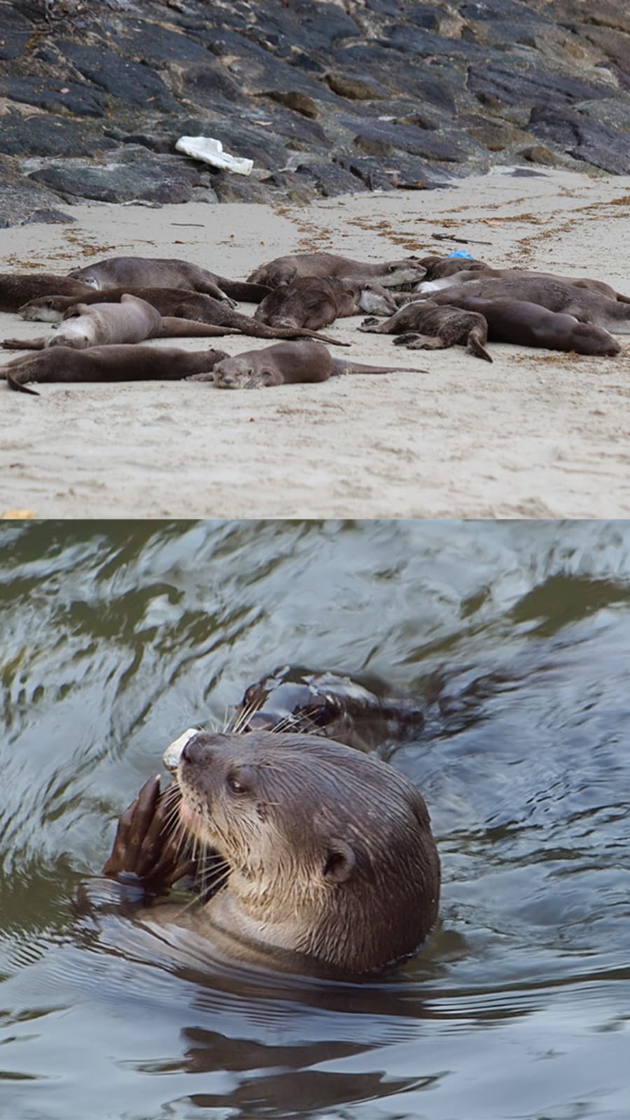 During the census, a “strong smell of spraint” at Changi Bay Point led Ms Tan to an elusive otter family. Looking through her binoculars into a narrow space under a road, she found them waking from their afternoon nap.