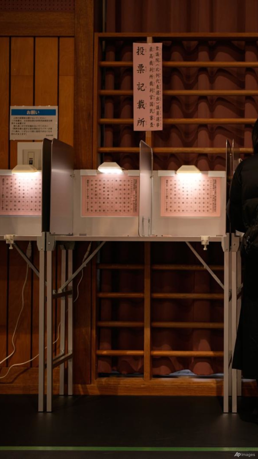 A voter casts his ballot for a general election at a polling station in Tokyo.