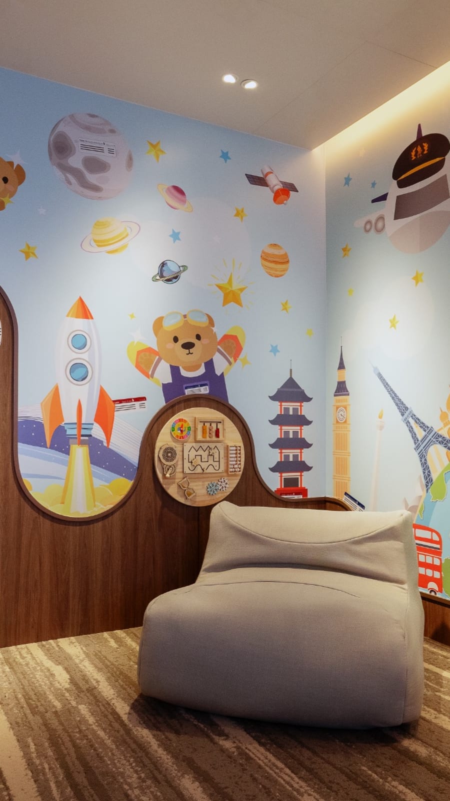 The children’s playroom features a Sony PlayStation 5 game console, alongside selected tactile games.