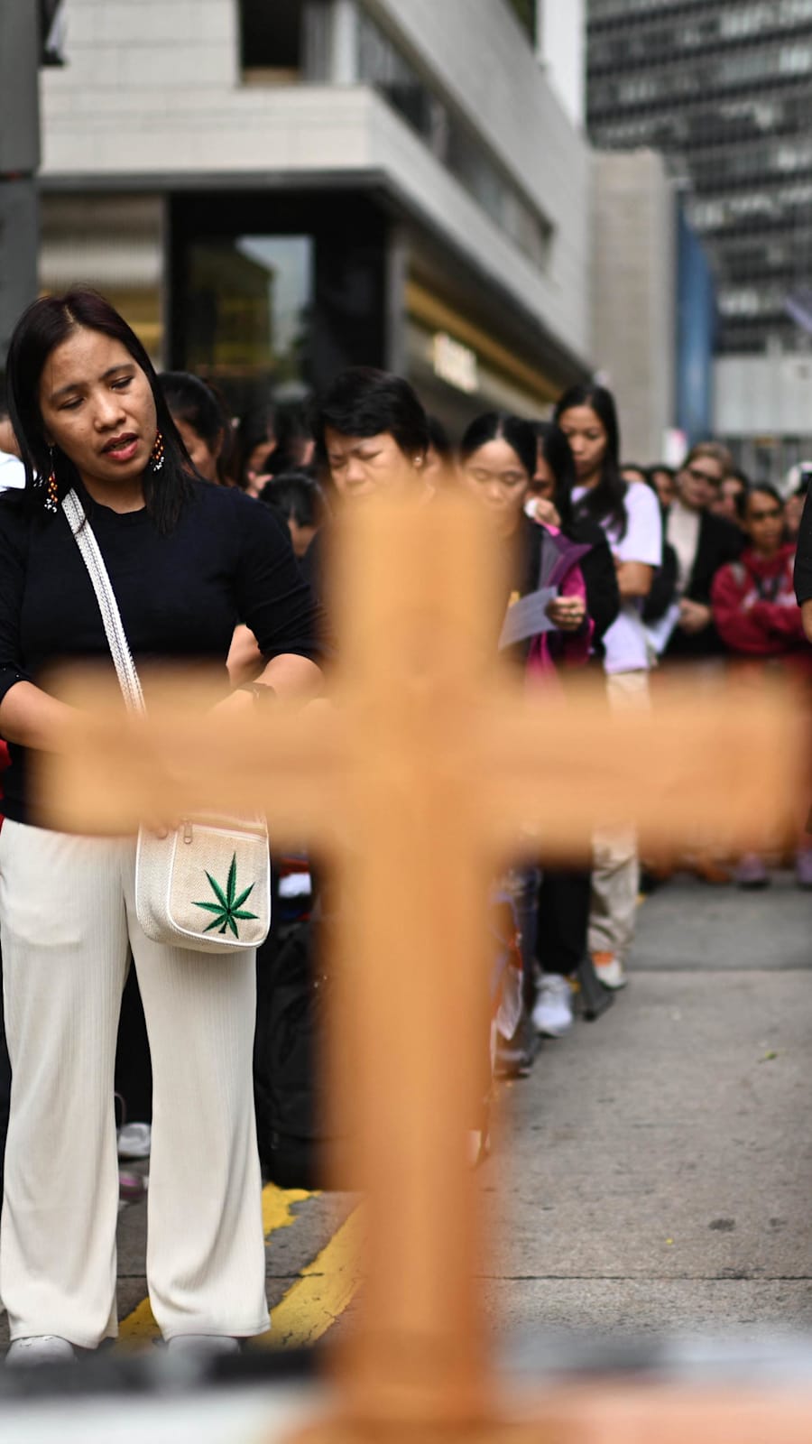 Hundreds attended outdoor prayers in central Hong Kong for the city’s Filipino community on Sunday morning. Seven Indonesian domestic workers and one Filipino helper were among the dead, and dozens of migrant workers remain missing.