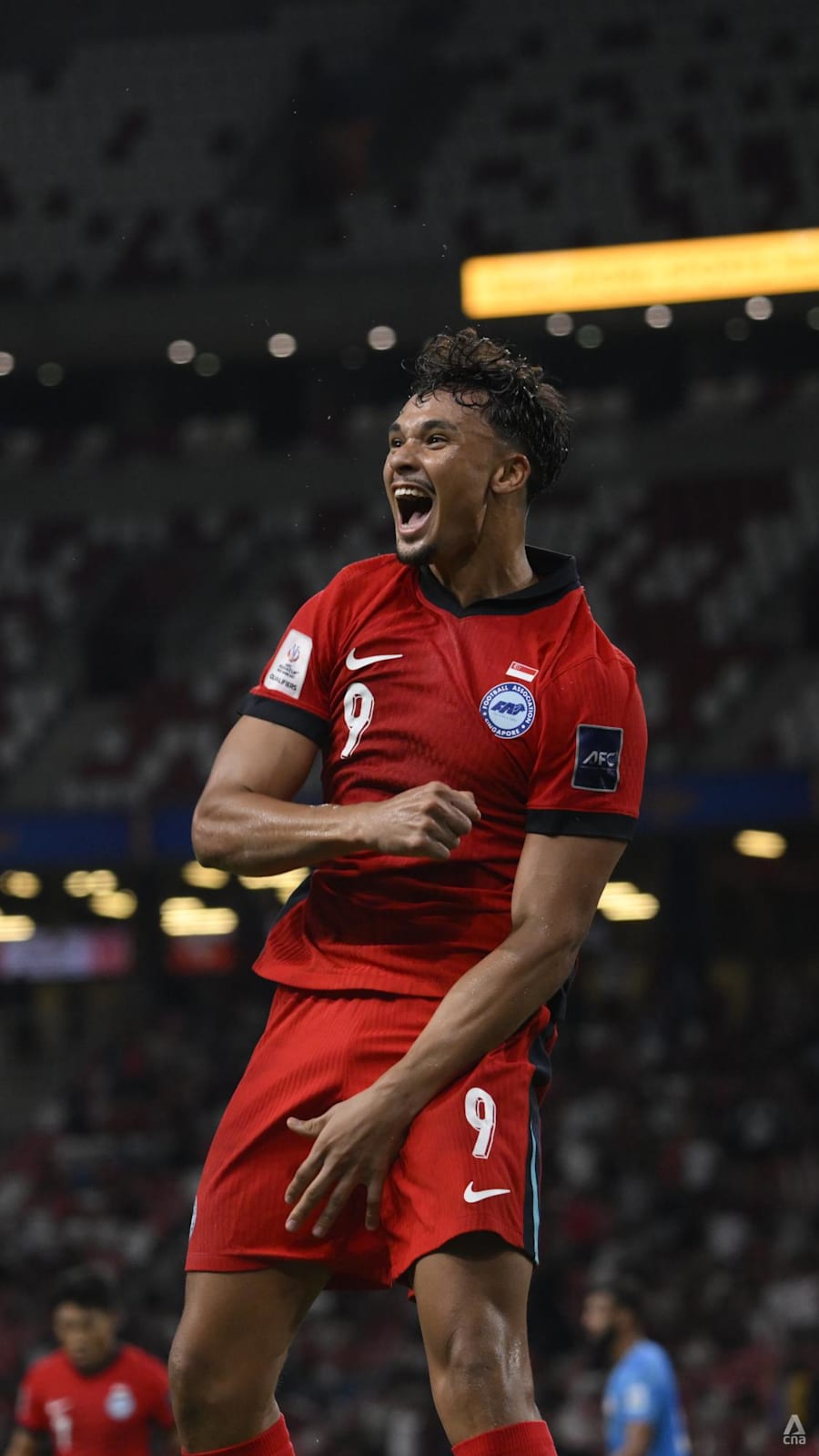 Singapore's Ikhsan Fandi celebrates after scoring the opening goal.
