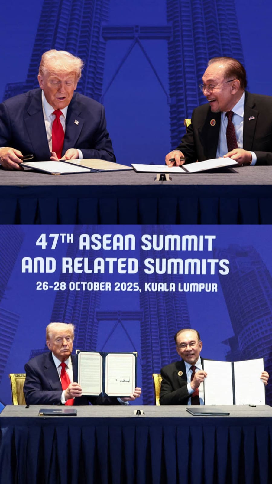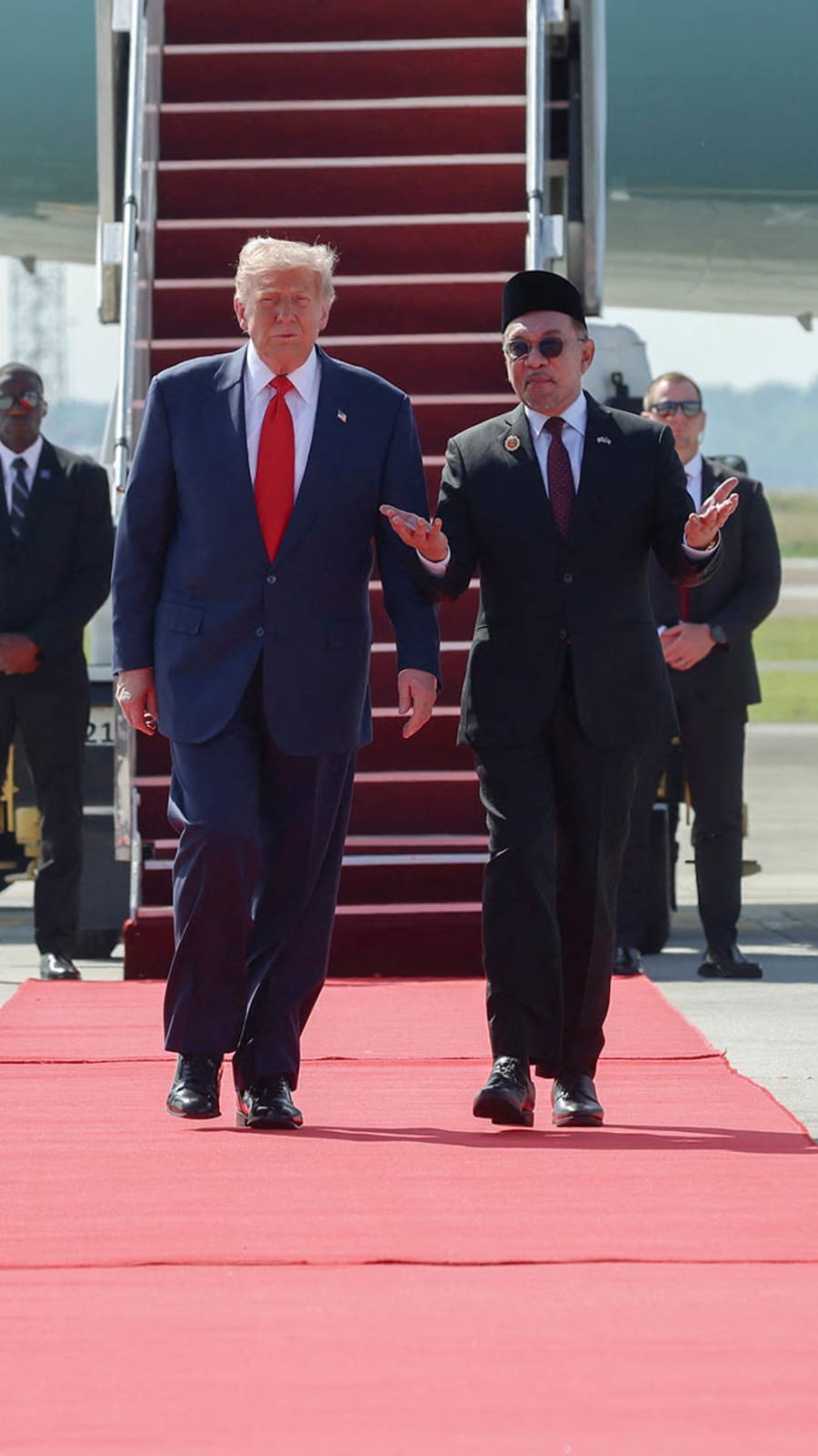 United States President Donald Trump arrived in Kuala Lumpur on Oct 26 on the first leg of his Asia tour. He was welcomed by Malaysian Prime Minister Anwar Ibrahim.