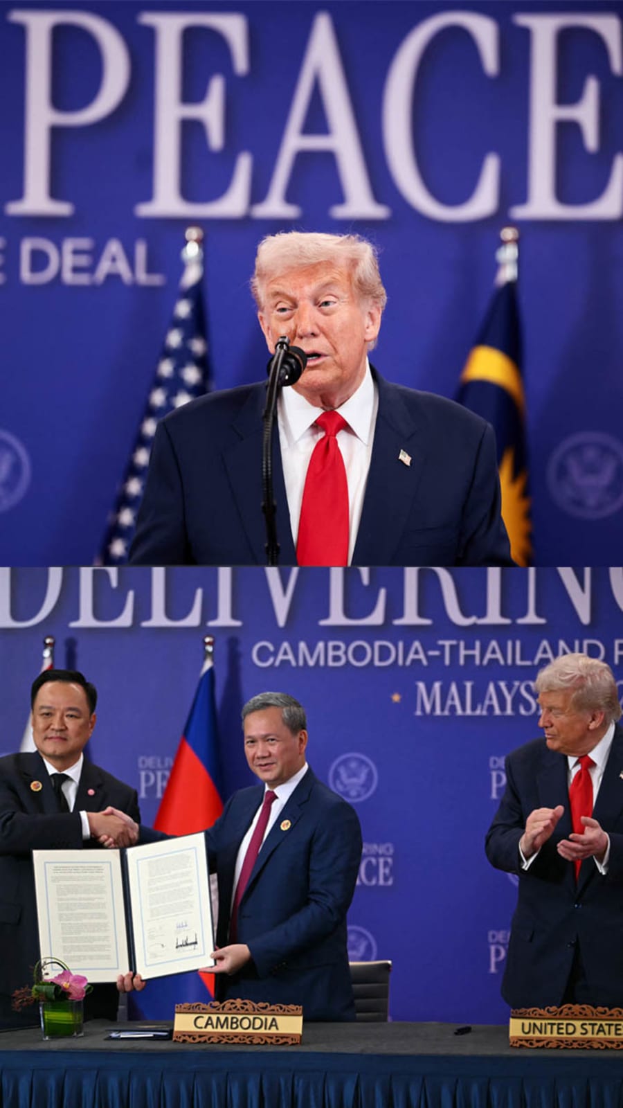 The US President presided over the signing of an agreement by Thailand and Cambodia to end all hostilities at the disputed border area.