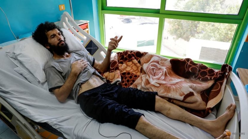 Palestinian Moazaz Obaiyat, who was released from Israeli jail, takes a cup of water, in a hospital in Bethlehem in the Israeli-occupied West Bank, on Jul 11, 2024. (Photo: REUTERS/Mussa Qawasma)