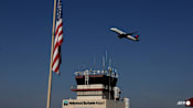 A medical helicopter is shown after it crashed on Highway 50 on Oct 6, 2025, in Sacramento, California. (Photo: AP/Scott Marshall)