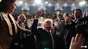 "America is back" was a key theme underlining his address, drawing loud applause from Republicans but hostility from Democrats, some of whom held up signs and walked out mid-speech in protest.