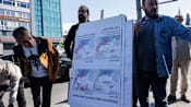 "We are met by helicopters, they demand we go on anchor," says another voice in Russian off-camera. Someone else, in Hindi, adds: "The plane is on top of us. It's either an aircraft or a drone. The military ship is turning towards the stern of the vessel."