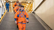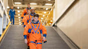 Crew 12 mission astronauts, from left, pilot Jack Hathaway, Russian cosmonaut Andrei Fedyaev, commander Jessica Meir and ESA astronaut Sophia Adenot, of France, leave the Operations and Checkout building before heading to pad 40 at the Cape Canaveral Space Force Station in Cape Canaveral, Florida, Friday, Feb 13, 2026, on a mission to the International Space Station. (Photo: AP/John Raoux)
