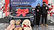 A man drives his EV along a section of the French A10 motorway, which has been equipped with a dynamic induction charging system that can charge cars wirelessly as they drive.