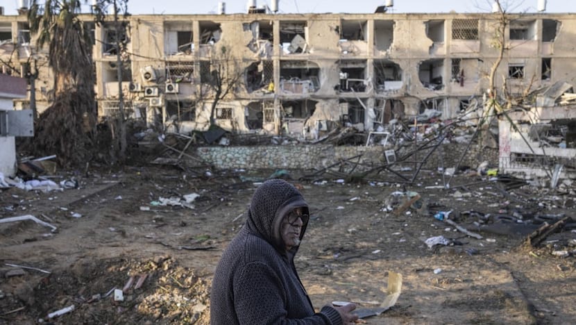 A man inspects the site of an Iranian missile strike in Dimona on Mar 22, 2026. (Photo: AFP/John Wessels)