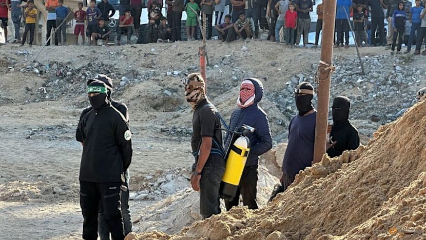 Reuters images showed an excavation a dozen or so metres below the surface, with Hamas men at the bottom of the trench next to a tunnel opening in an apparent search for bodies inside.