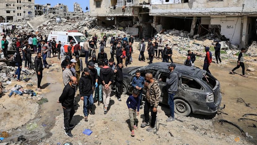 GAZA: An Israeli airstrike killed at least 10 people and wounded several others outside a school housing displaced Palestinians on Monday (Apr 6), health officials said, in the latest violence overshadowing the fragile US-backed Gaza ceasefire deal.