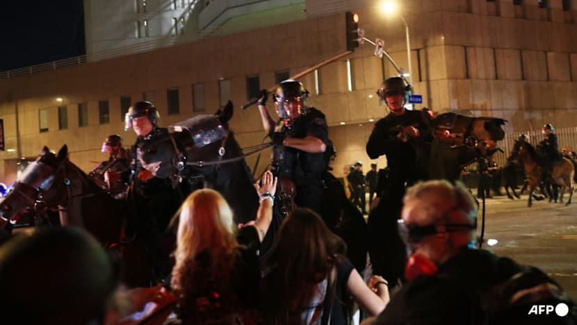 But in downtown Los Angeles, police fired nonlethal rounds and tear gas late on Saturday to disperse crowds that included "No Kings" protesters, the Los Angeles Times reported.