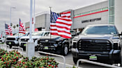 Brand new Subaru cars sit in a storage lot at Auto Warehouse Co on Mar 24, 2025 in Richmond, California. (Photo: Getty Images/AFP/Justin Sullivan)