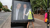 A photograph of US President Donald Trump and Jeffrey Epstein is displayed on the side of a van in Aberdeen city centre, during US President Donald Trump's five-day private trip to Scotland, Monday, July 28, 2025. (Photo: AP/Jane Barlow/PA)