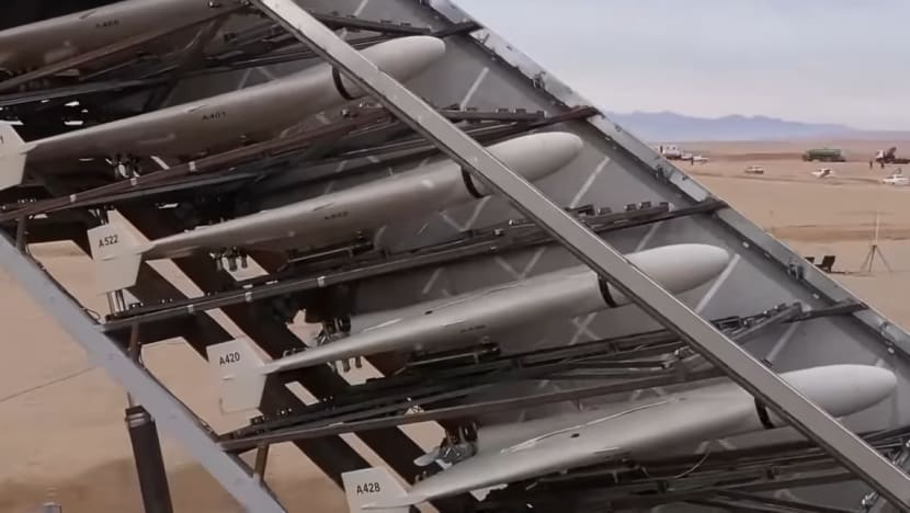 A screengrab of a video demonstration of Shahed-136 drones. (Image: YouTube/War*68*)