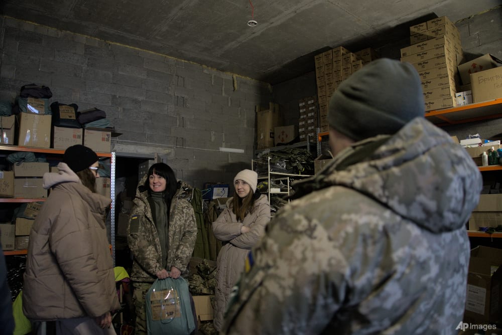“Ksyusha gave us everything we wear. ... She is our saviour,” said Maria Stalynska, who joined the military in August and has been on an unspecified front line, using a nickname for Drahaniuk. “There are even cases when we need medicine or a hospital. We immediately go to Ksyusha.”