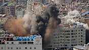 Smoke and debris rise after a building is hit by an Israeli airstrike in the area of Abbasiyeh, on the outskirts of the southern Lebanese city of Tyre, on Apr 8, 2026. (Photo: AFP/Kawnat Haju)